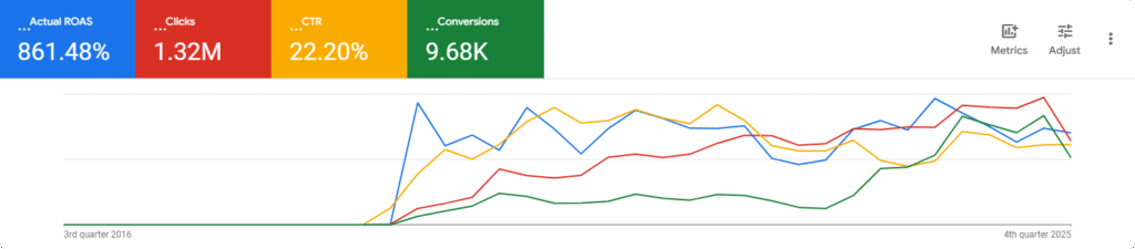 Within a sustained program (3+ years, Jordan), Time Center Jordan’s campaigns became reliably profitable and scale-ready. Accurate data + retargeting + refined keyword/creative strategy turned ad spend into consistent revenue and boosted store demand.